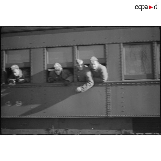 Fantassins du Princess Patricia's canadian light infantry (PPCLI) à bord d'un train.