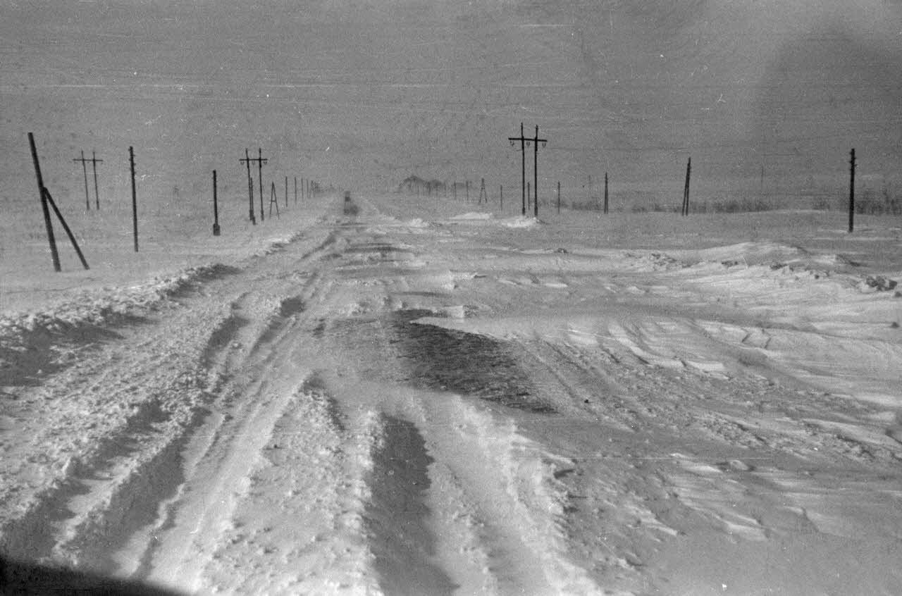 Sur un terrain d'aviation enneigé, activités de la Luftwaffe et sur une route glacée, la retraite allemande.