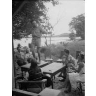 Soirée au mess du 3/12e régiment de Dragons à Dominique-Luciani, le sous-lieutenant Wdowick s'occupe…