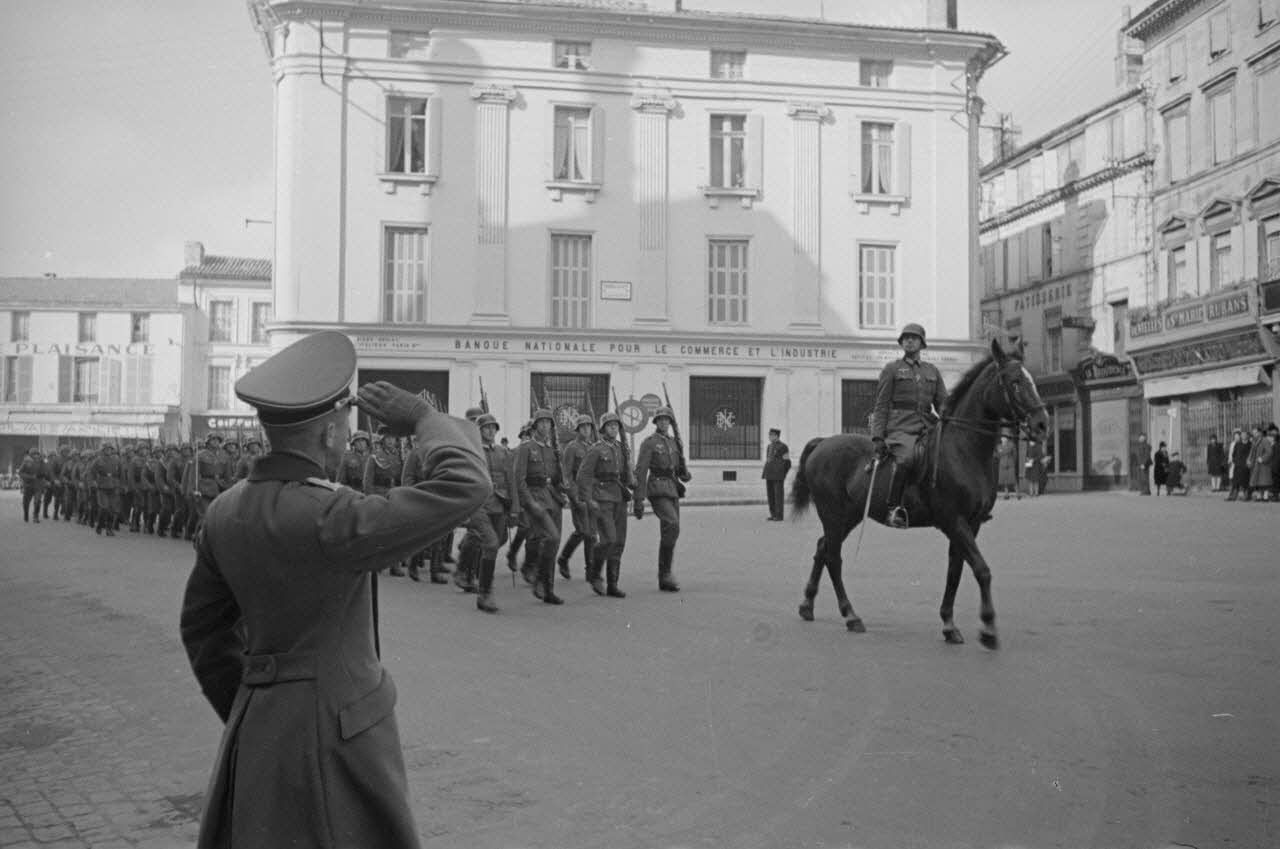A Angoulême, la relève de la garde rythmée par la musique militaire allemande.