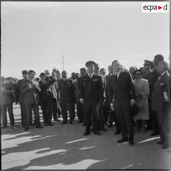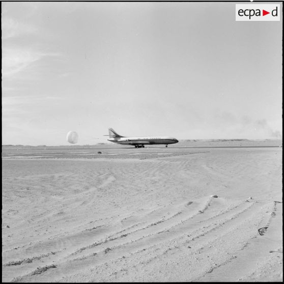 Inauguration de l'oléoduc Hassi Messaoud-Bougie. Arrivée des autorités au terrain d'aviation, par un avion Caravelle d'Air France.