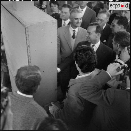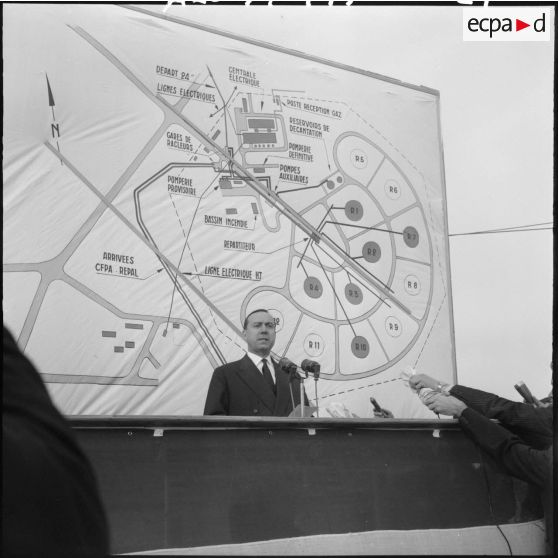 Inauguration de l'oléoduc Hassi Messaoud-Bougie. Michel Debré déclenche l'alimentation de l'oléoduc.