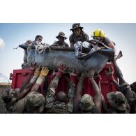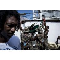 Cérémonie de prise d'armes sur l'atoll de Hao, à…