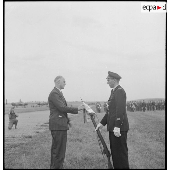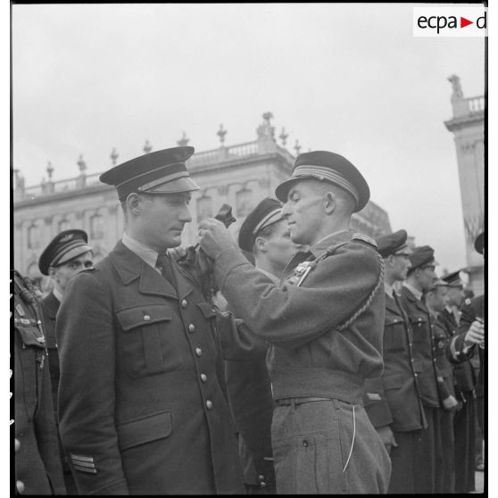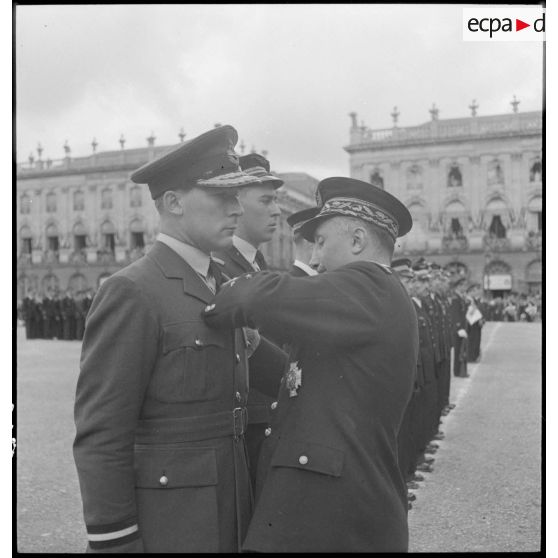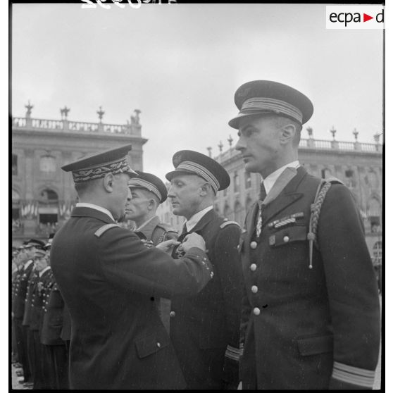 Le général de corps aérien Valin décore des officiers supérieurs.