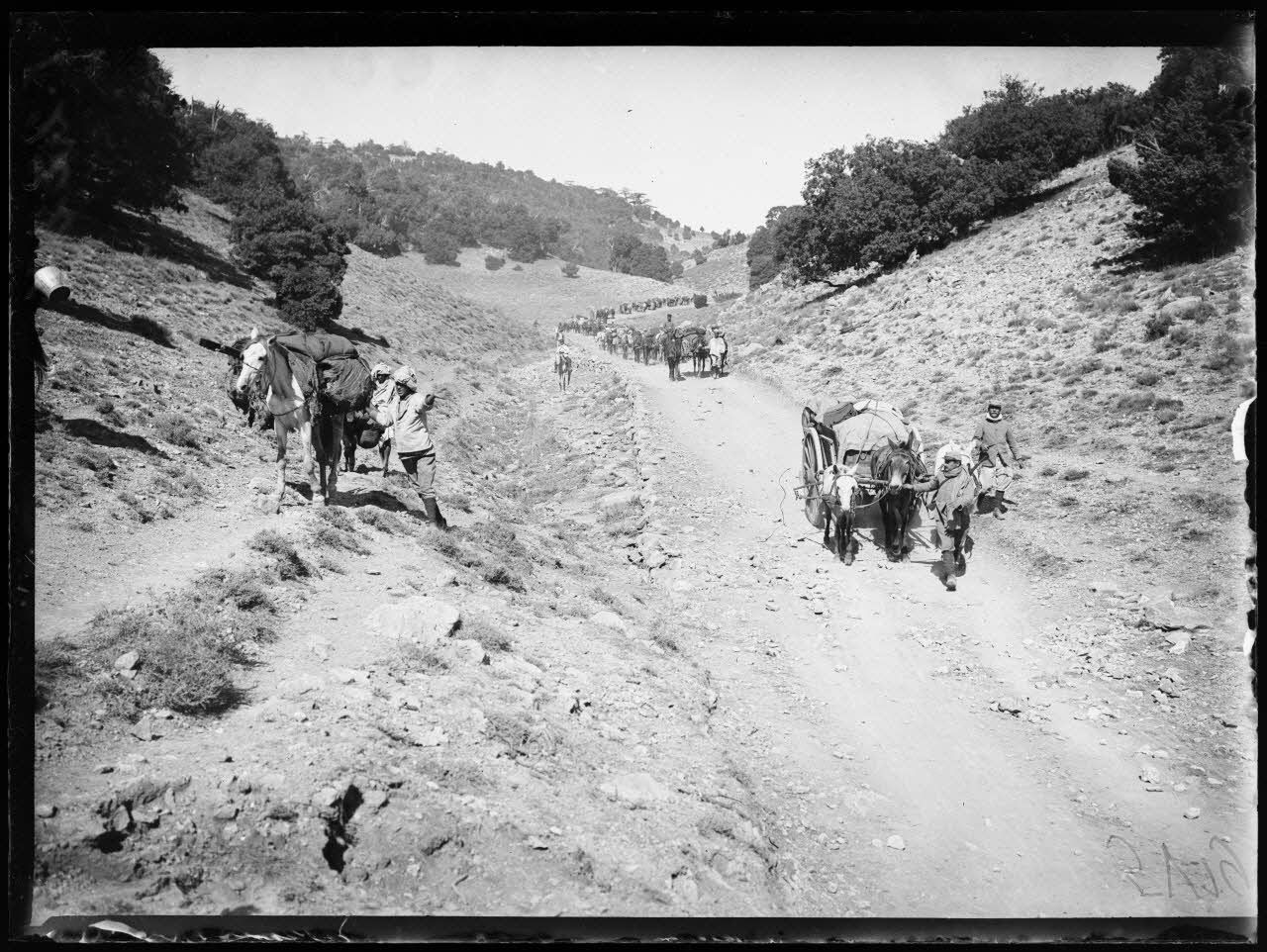 Opérations militaires sur la Haute Moulouya. Convoi de ravitaillement par arabes. [légende d'origine]