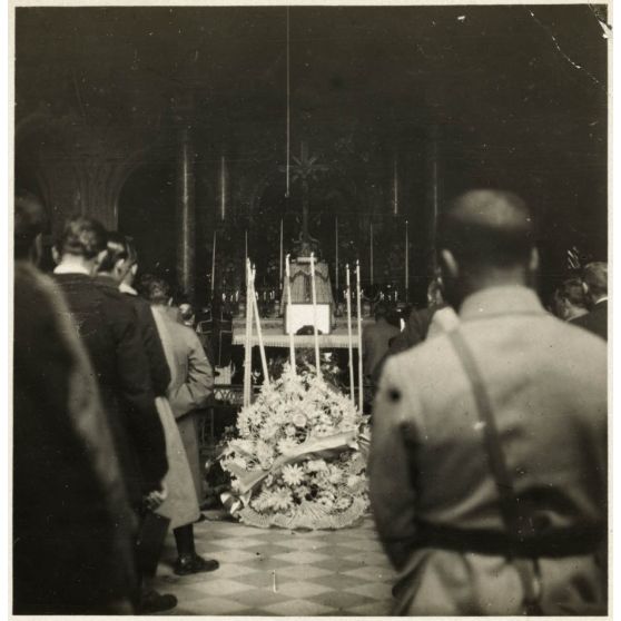 [Funérailles du caporal Lamarche, escadrille N.79, tué le 13 juillet au cours d'un vol d'acrobatie en l'honneur du 410e d'infanterie].