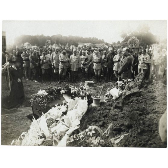 [Funérailles du caporal Lamarche, escadrille N.79, tué le 13 juillet [1917] au cours d'un vol d'acrobatie en l'honneur du 410e d'infanterie].