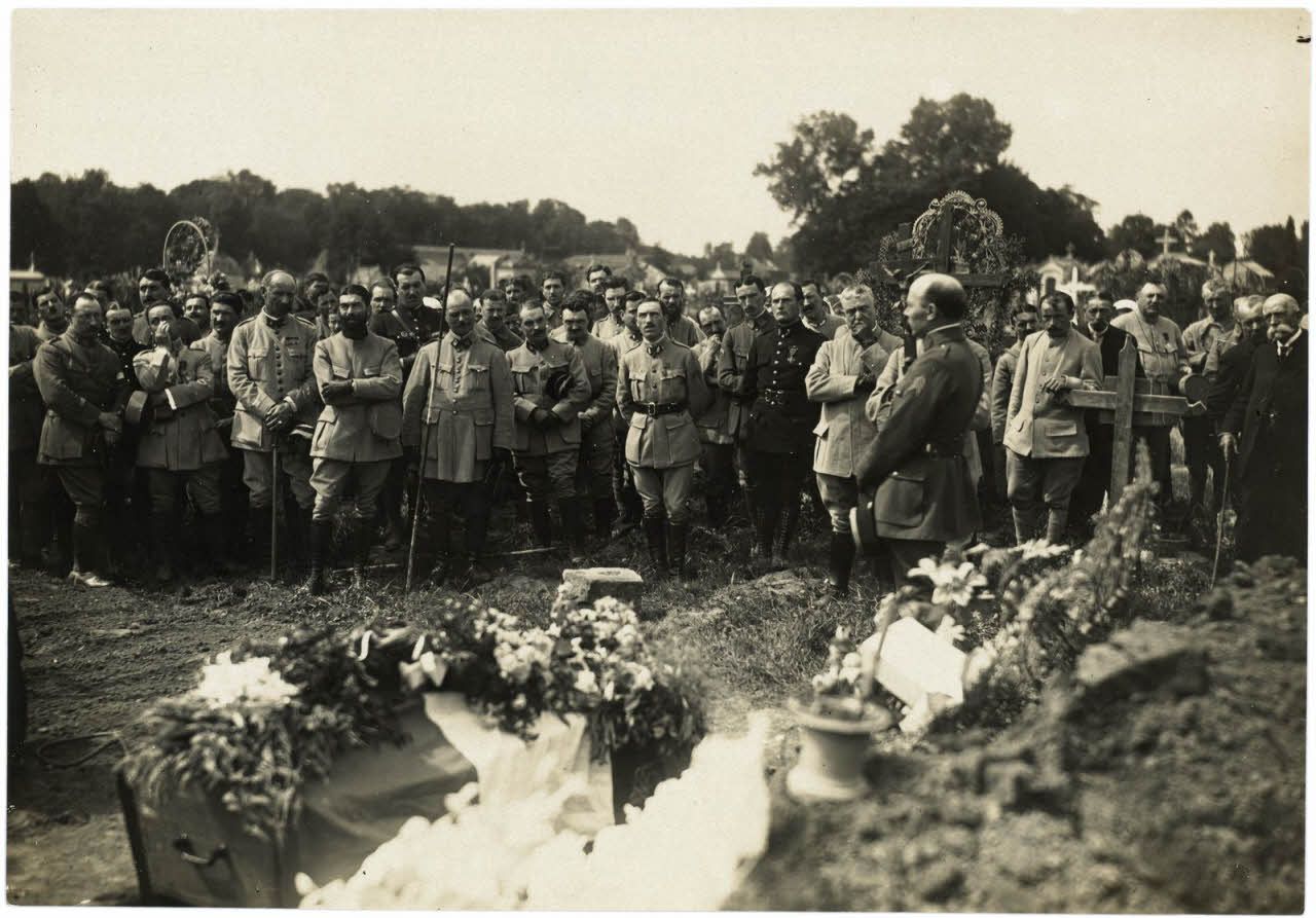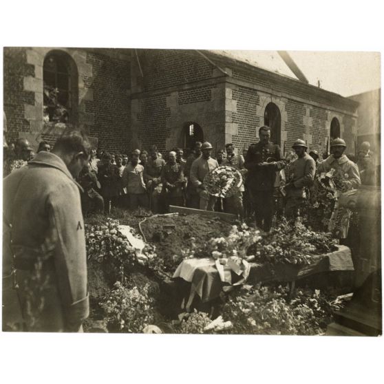 [Funérailles du caporal Lamarche, escadrille N.79, tué le 13 juillet [1917] au cours d'un vol d'acrobatie en l'honneur du 410e d'infanterie].