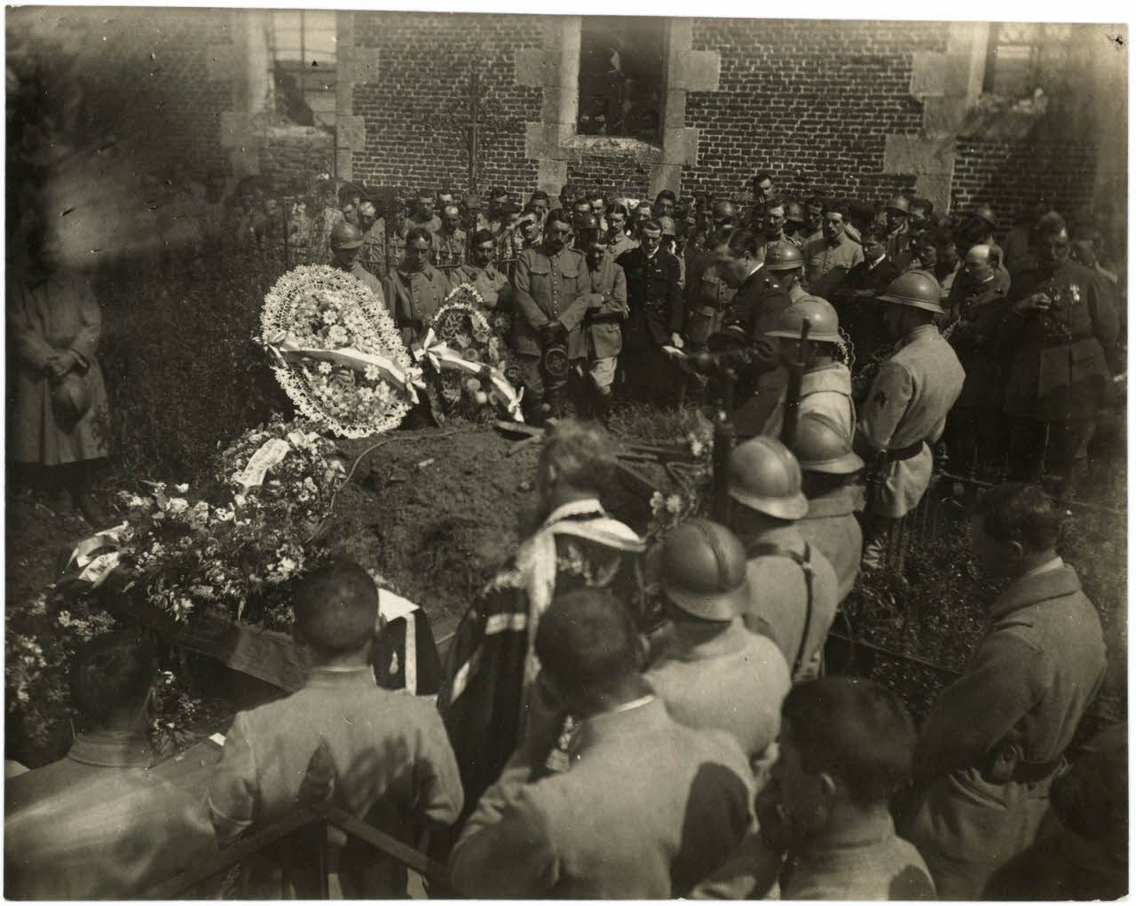 [Funérailles du caporal Lamarche, escadrille N.79, tué le 13 juillet [1917] au cours d'un vol d'acrobatie en l'honneur du 410e d'infanterie].