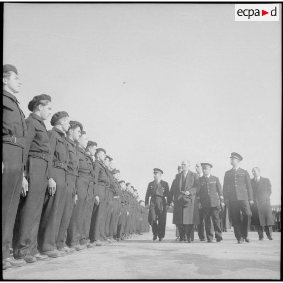 Présentation du personnel de Biscarrosse au ministre de l'Air.