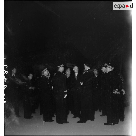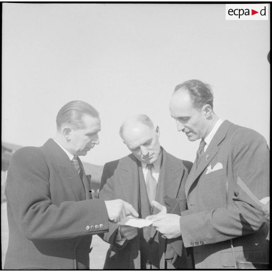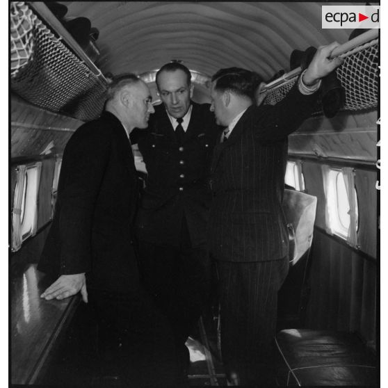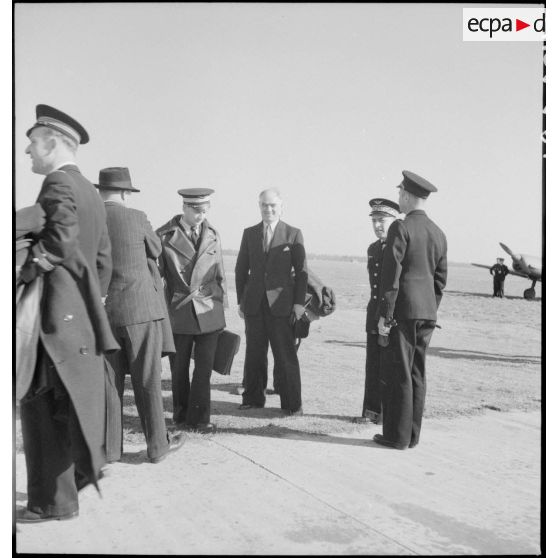 Le ministre de l'Air Charles Tillon s'entretient avec ses collaborateurs.