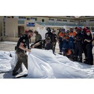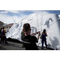 Des gendarmes installent une tente en coordination…