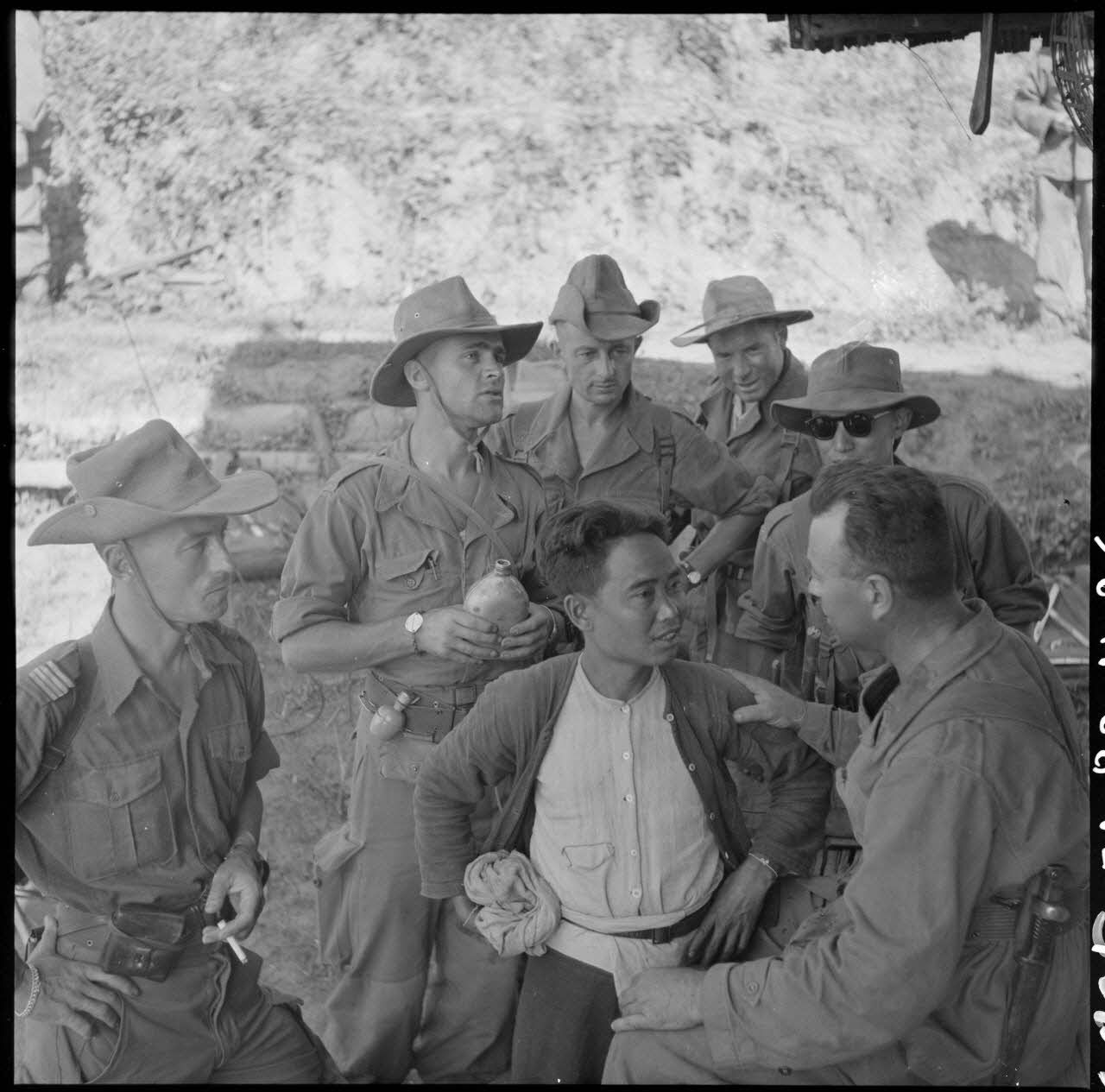 Le chef du village de Houei Lot donne aux officiers du 5e bataillon de chasseurs laotiens (BCL) des renseignements sur l'activité vietminh dans la région.