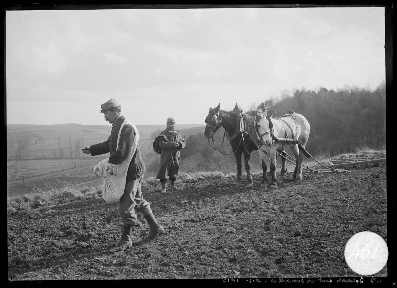 Nos soldats font les semailles, Oise, 1915. [légende d'origine]