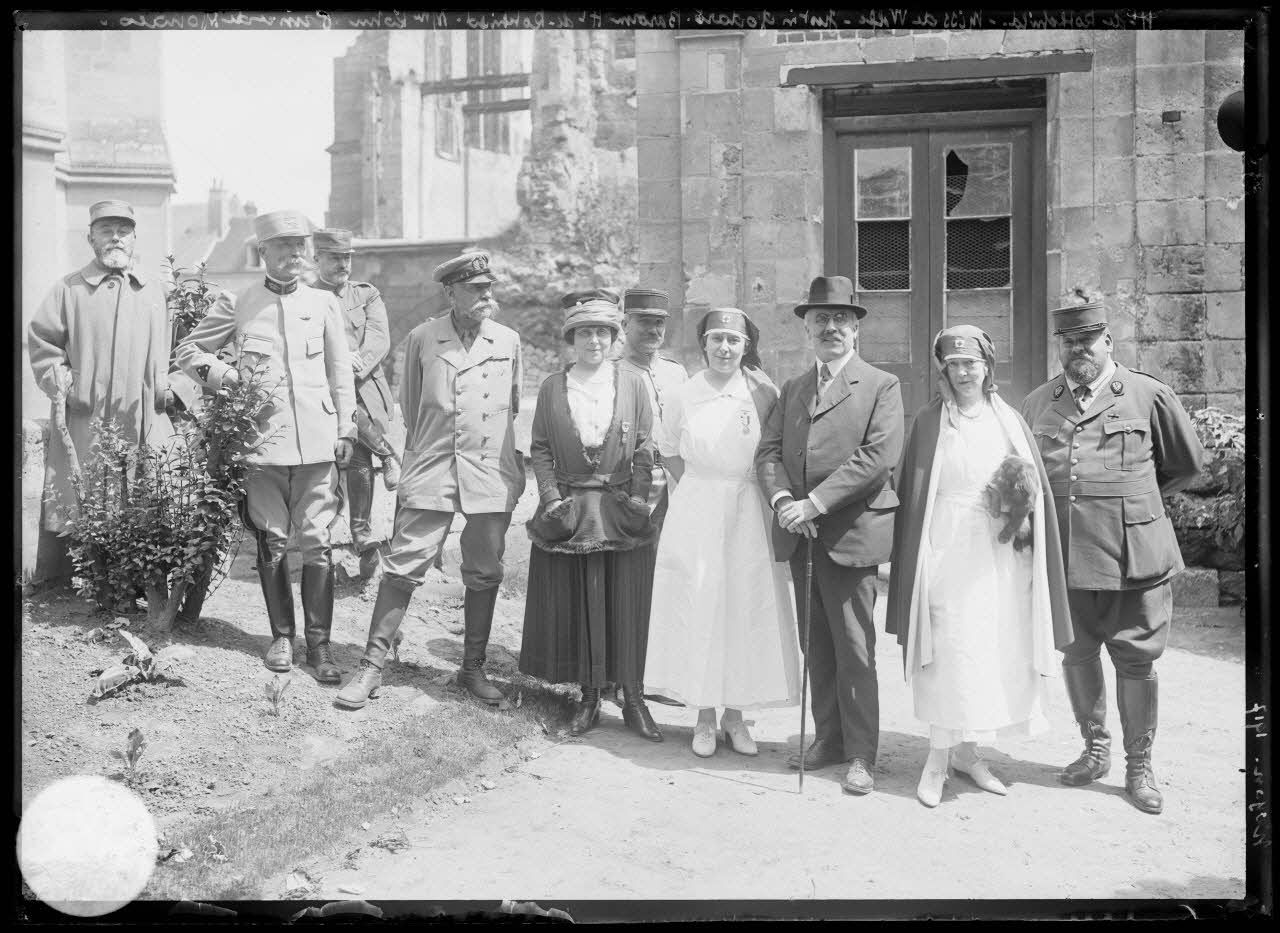 Noyon, 1917, Mme de Rotschild, Miss de Walfe, Justin Godart, baron Henri de Rotschild, Mme Rohn, Prince de Monaco. [légende d'origine]
