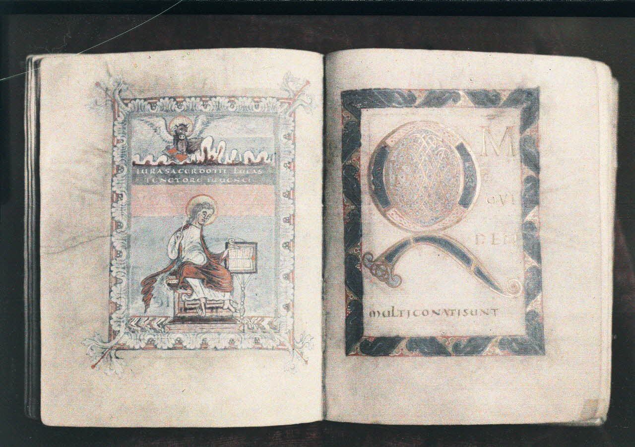 Noyon. Cathédrale. Evangéliaire de Saint-Golberth, datant du IXe siècle. [légende d'origine]