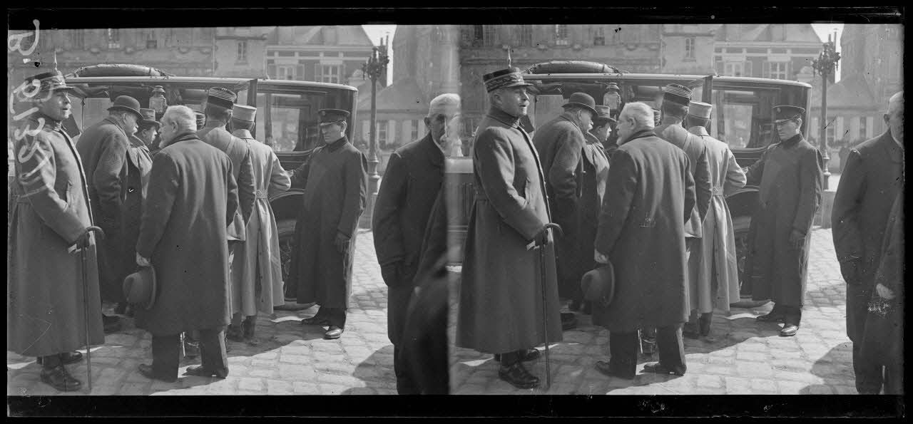Noyon, les généraux Humbert et Streicher, commandant la 161e brigade assistant au départ du président.
