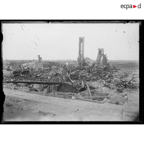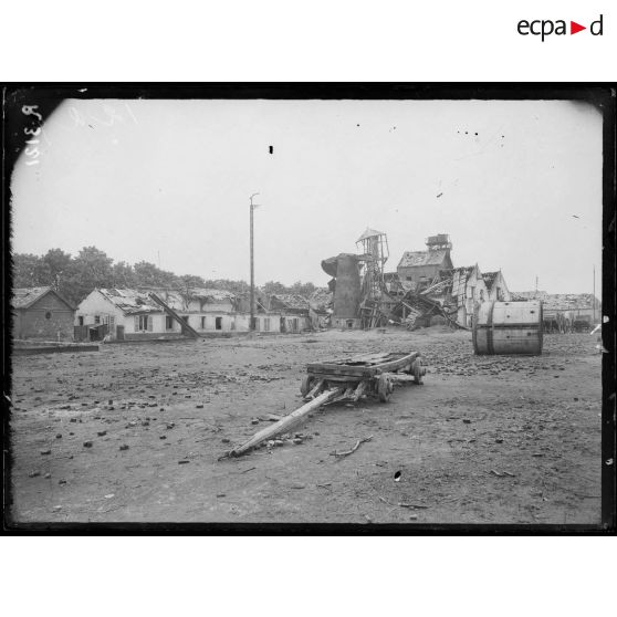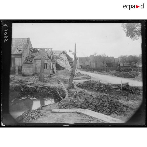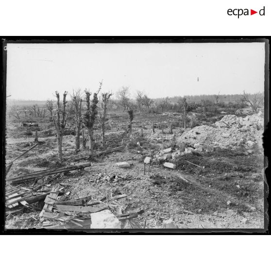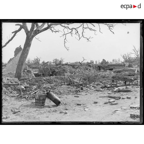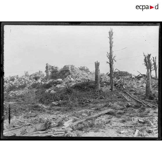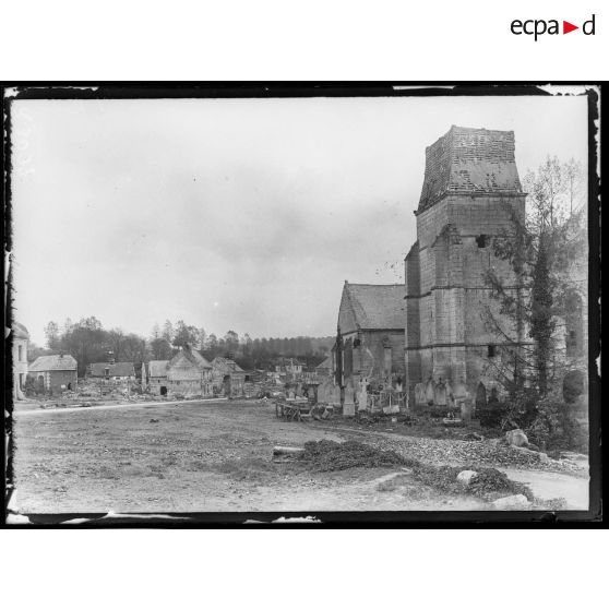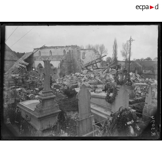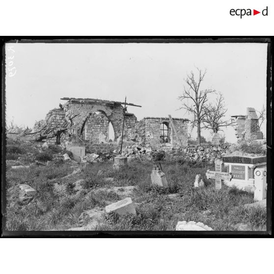 Crapeaumesnil (Oise). Ruines de l'église et le cimetière ravagé.