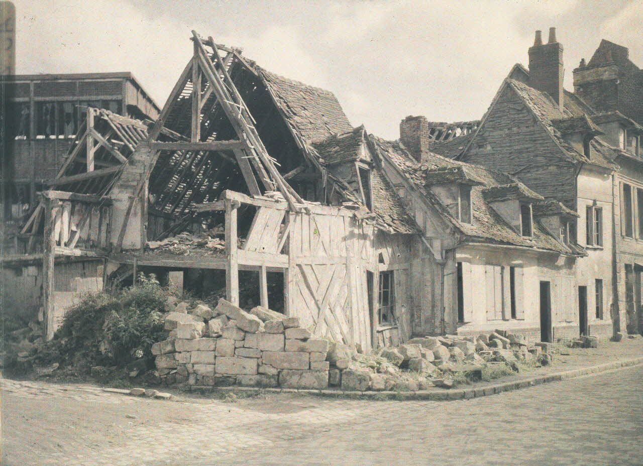 La plaque est manquante dans la collection Albert Kahn, mais les pignons des maisons en ruines sont reconnaissables sur les deux clichés précédents A 13310 et A 13309.