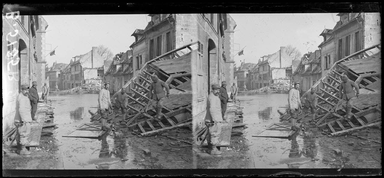 Noyon, rue des tanneurs, inondations provoquées par les allemands. [légende d’origine]