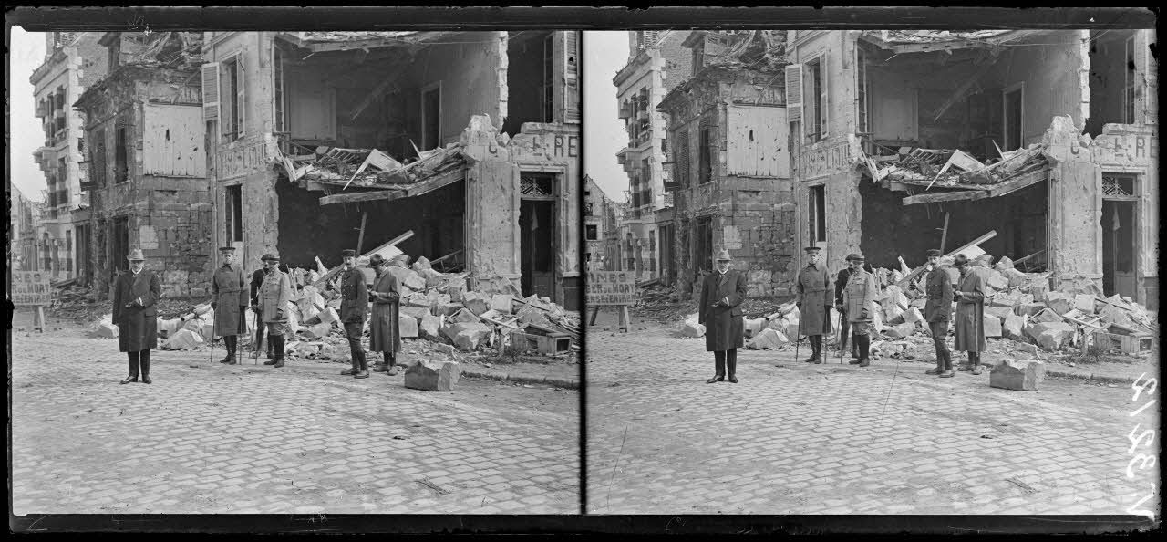- A Saint-Quentin (Aisne, 14/10/1918, de V 3204 à V 3210) le président du Conseil Georges Clemenceau visite la ville dévastée, aux côtés de M. Renault et du général Mordacq. La ville a été fortifiée par les troupes allemandes (blockhaus et barricades) avant leur départ.