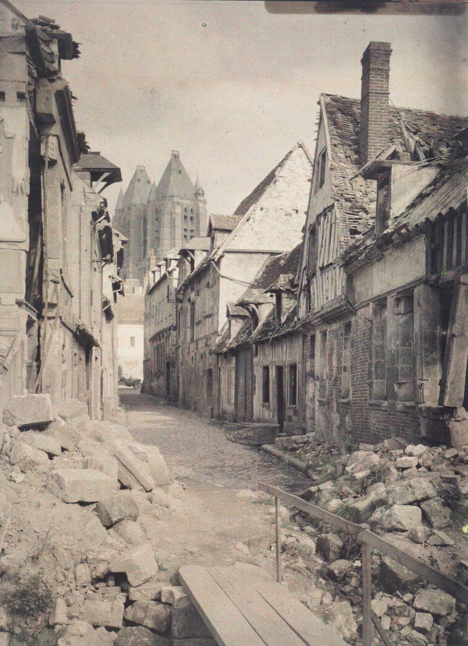 - les ruines et destructions occasionnées par la guerre à Verdun, Reims, Arras ou ailleurs : maisons, églises, cathédrales, lieux symboliques des grandes villes de province en ruines ;