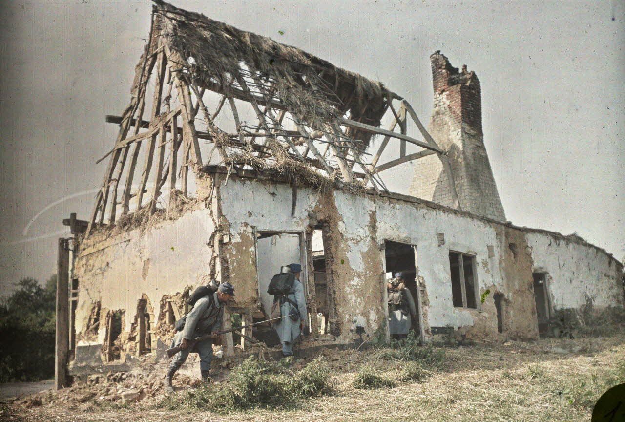 Note : l'autochrome est à rapprocher d'une vue similaire sur le négatif sur plaque de verre en noir et blan cocté D193-1-867 dans les collections de l'ECPAD et dont la légende originelle est "Somme 1914".