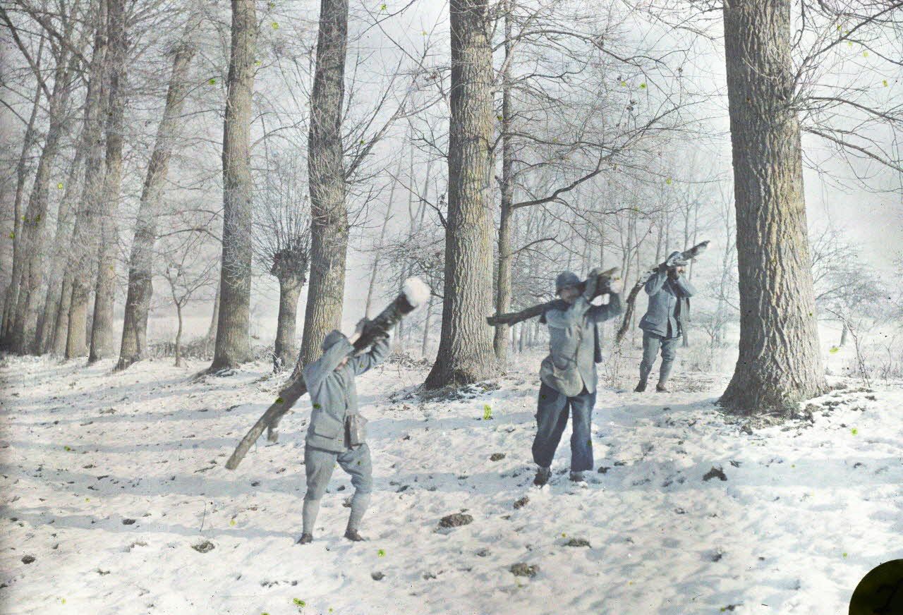 Note : l'autochrome est à rapprocher des trois photographies en noir et blanc sur plaques de verre cotées D193-2-750, D193-2-751 et D193-2-752 dans les collections de l'ECPAD.