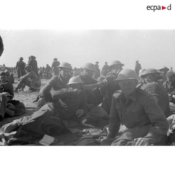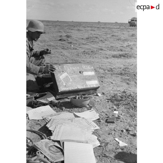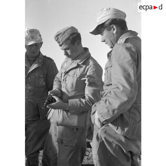 En Libye, à Sidi Rezegh, lors de l'opération Crusader, le général Rommel prend des photos. Prisonniers britanniques. Une batterie allemande en position.