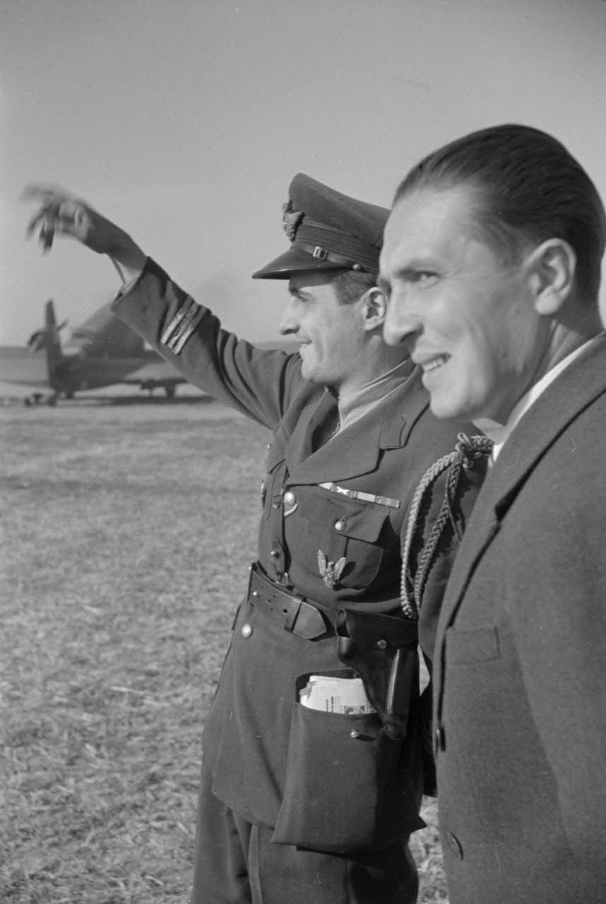 Deux pilotes roumains du Grupul 9 devant un Junkers Ju-52 aux couleurs roumaines.