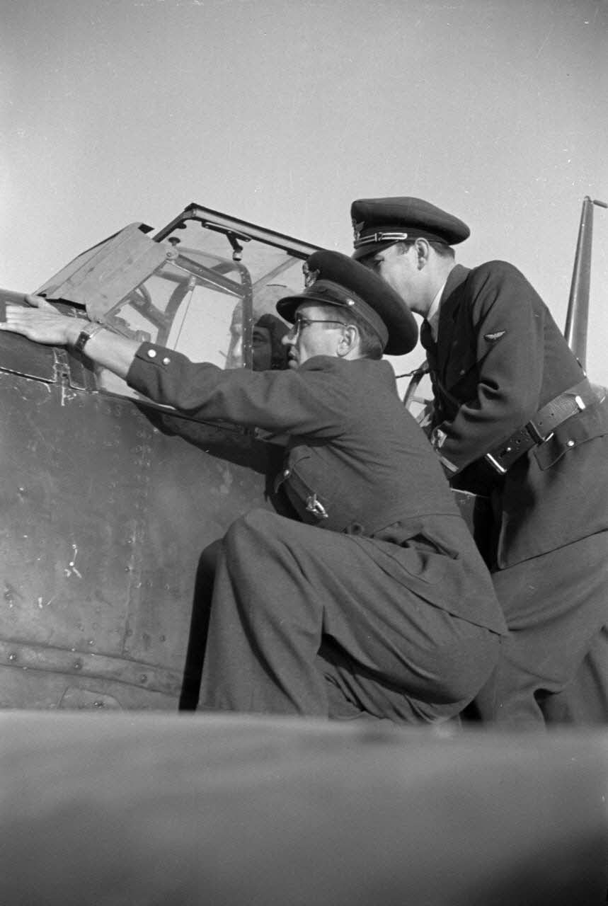 Un officier roumain du Grupul 9 lors d'un départ en mission des avions de chasse Bf-109.