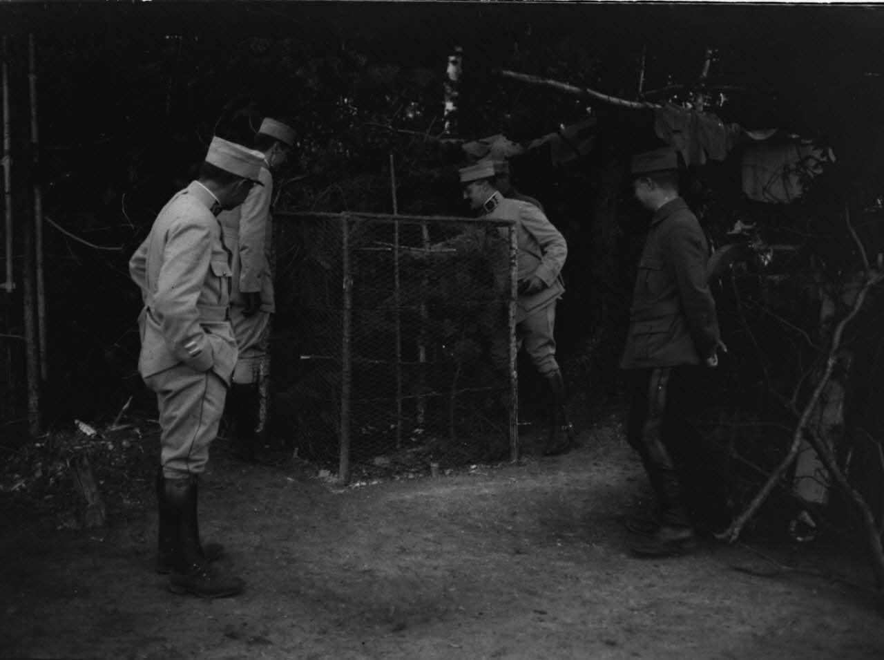 [Officiers s'occupant d'une cage, s.d.]
