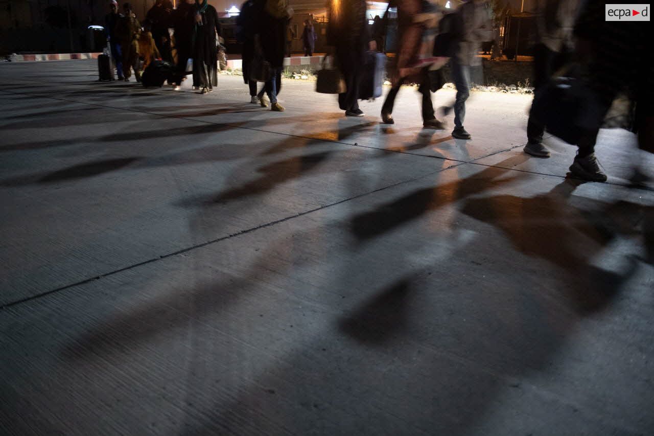 Des réfugiés quittent l'Afghanistan depuis l'aéroport de Kaboul. -