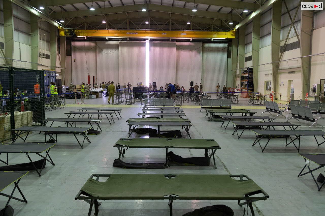 - Dispositif d'accueil pour les réfugiés afghans dans un hangar de la base d'Al Dhafra, aux Emirats arabes unis.