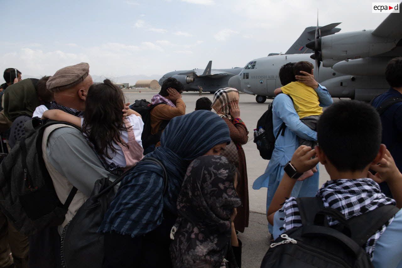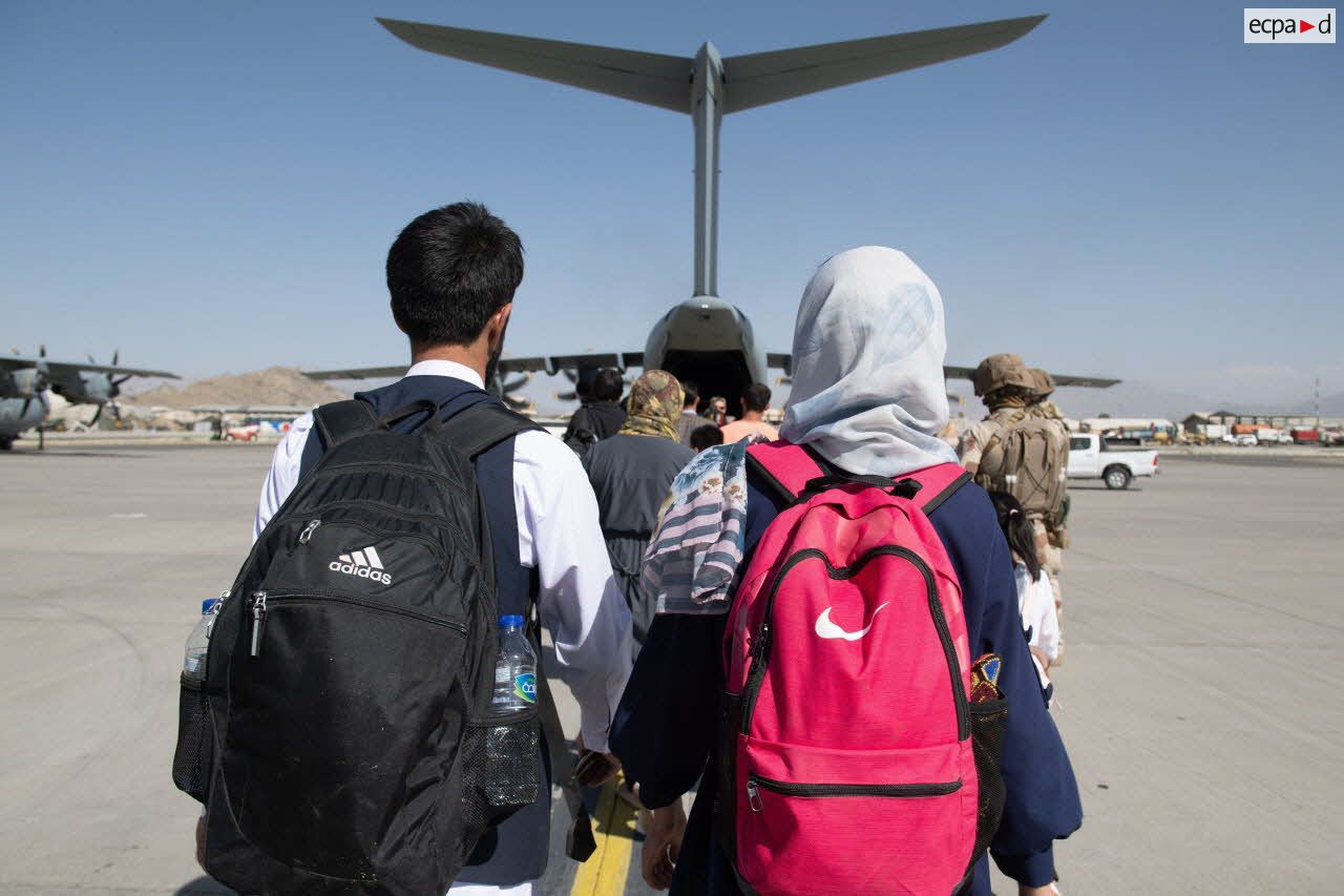 - Des réfugiés quittent l'Afghanistan depuis l'aéroport de Kaboul.
