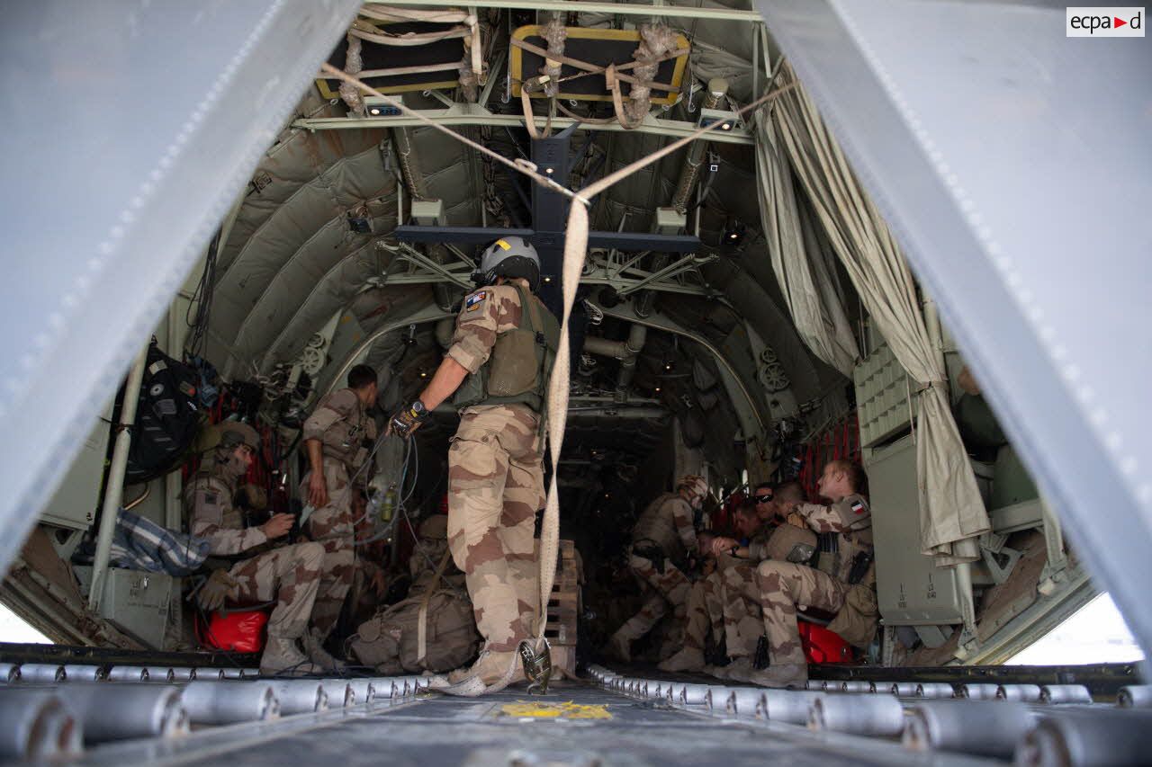- Des soldats du 5e régiment de cuirassiers (5e RC) embarquent à bord d'un avion-cargo Lockheed Super hercules C-130 à Kaboul, en Afghanistan.