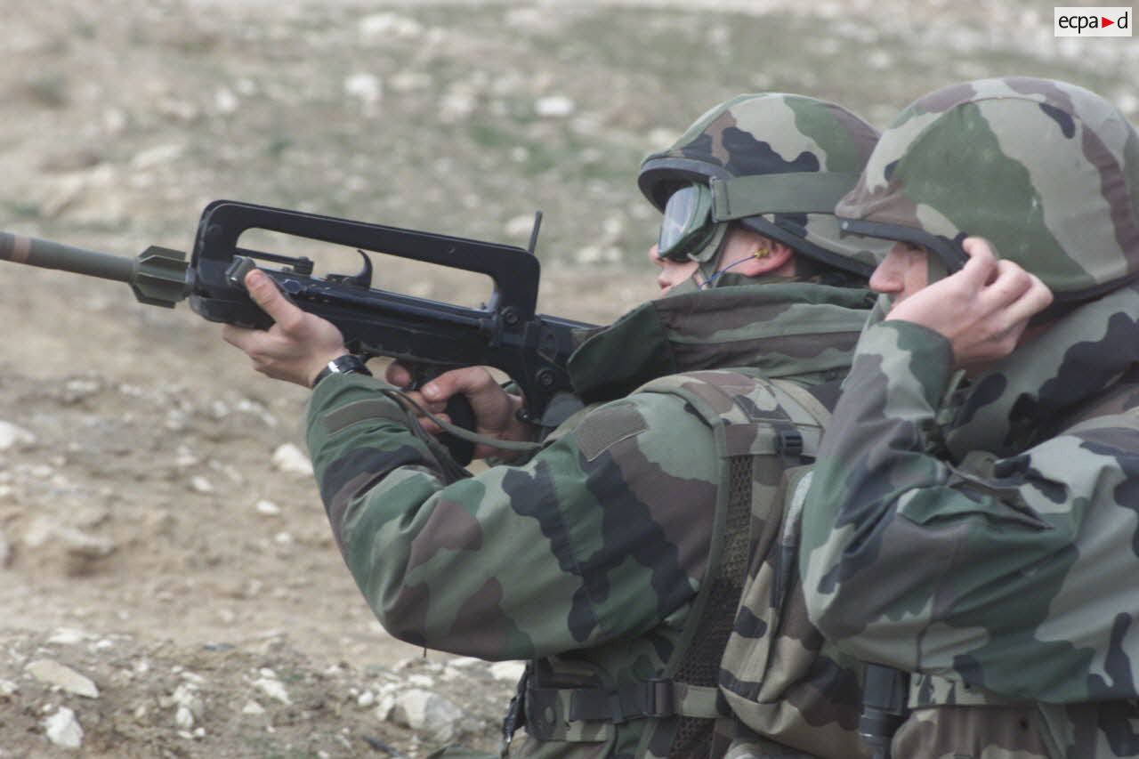 - Entraînement au tir d'une section de la 3e compagnie du 21e RIMa (régiment d'infanterie de marine) à Mazar e Charif. Tir de grenades à fusil avec un FAMAS pendant la séance.