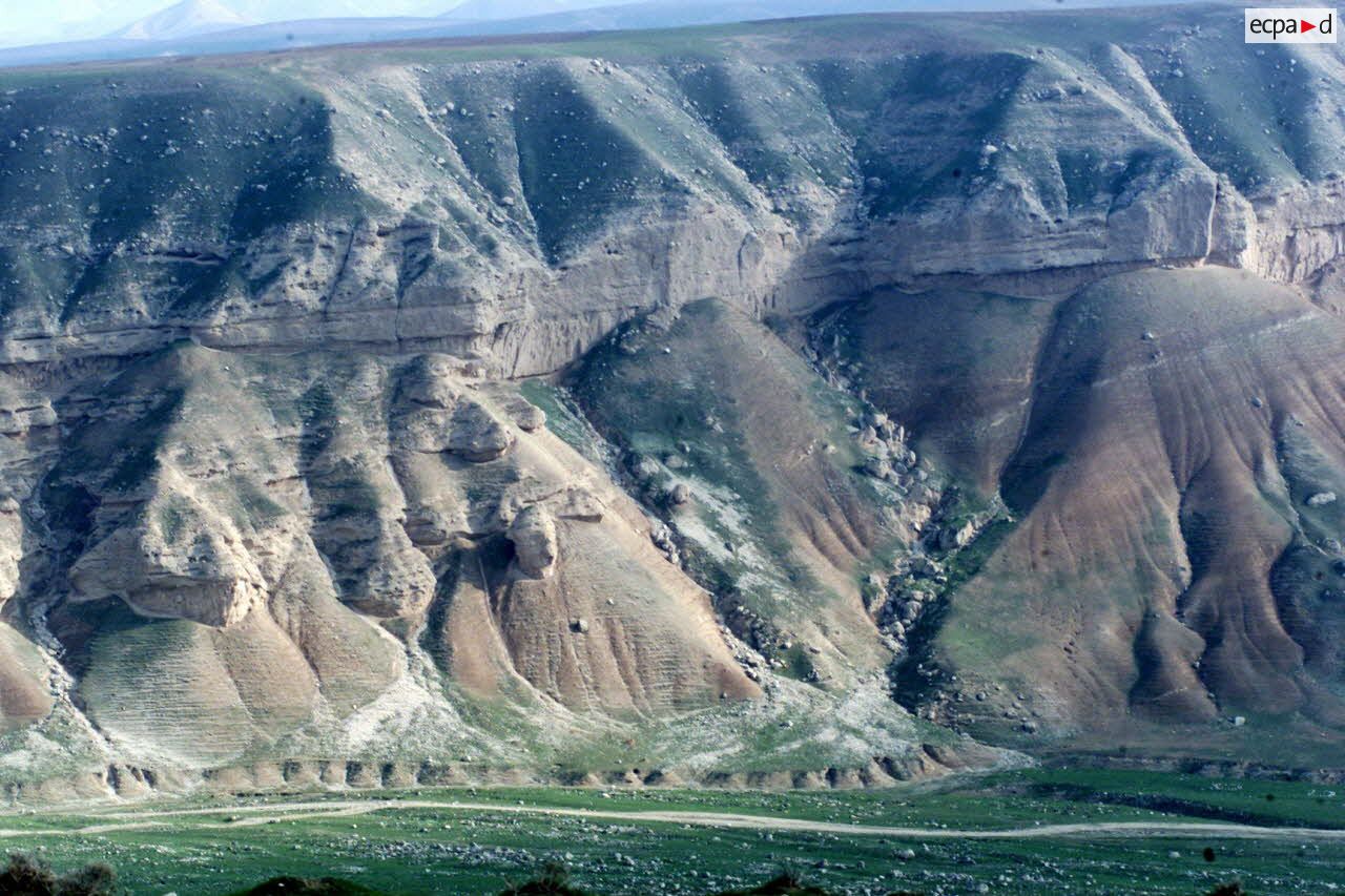 - Paysage de la vallée encaissée de l'Amou Daria, dont les eaux ont raviné le relief montagneux et aride.