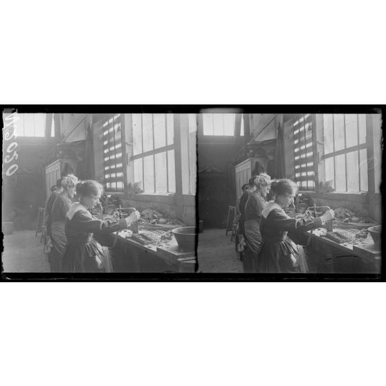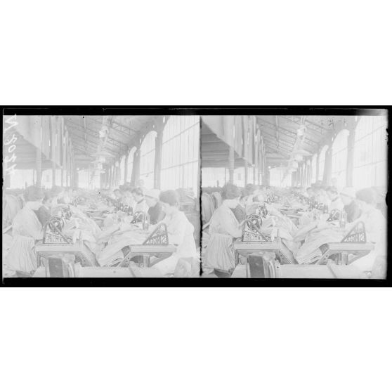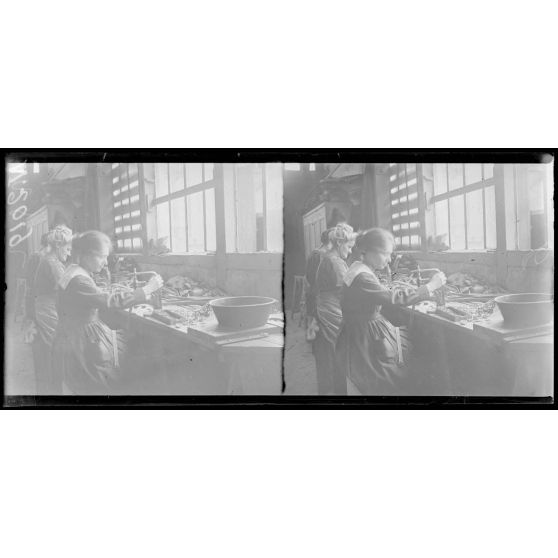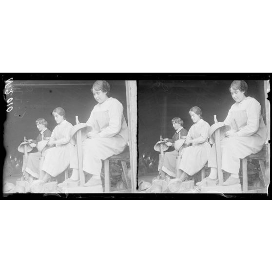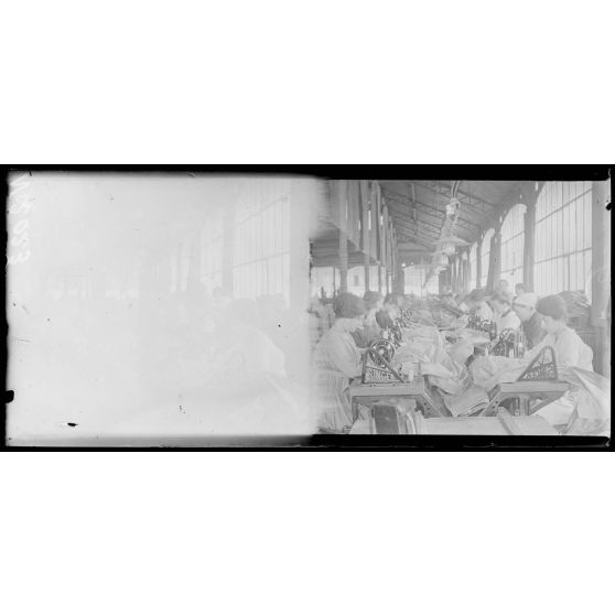 Orléans (Loiret). Ateliers de récupération. Ressemelage de chaussures retour du front (19-9-17).