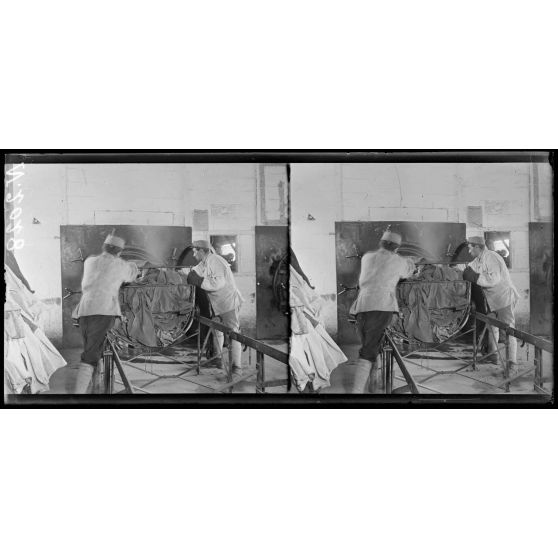 Orléans (Loiret). Ateliers de récupération et de confection d'effets chauds. Etuve à désinfecter les effets retour du front (19-9-17).