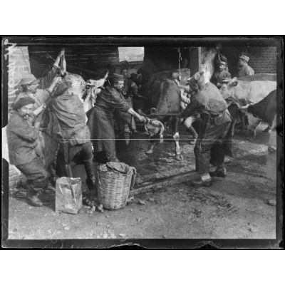 - des soldats, parmi lesquels des tirailleurs sénégalais, sont de corvée de soupe et amènent la soupe en première ligne ;