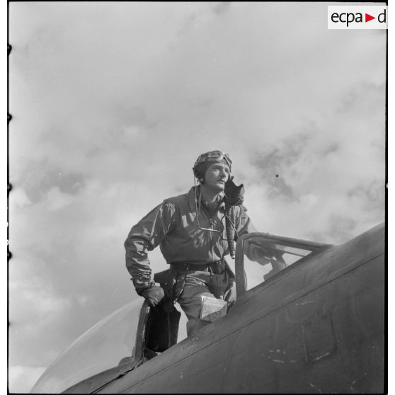Un pilote sur son P-47 Thunderbolt.