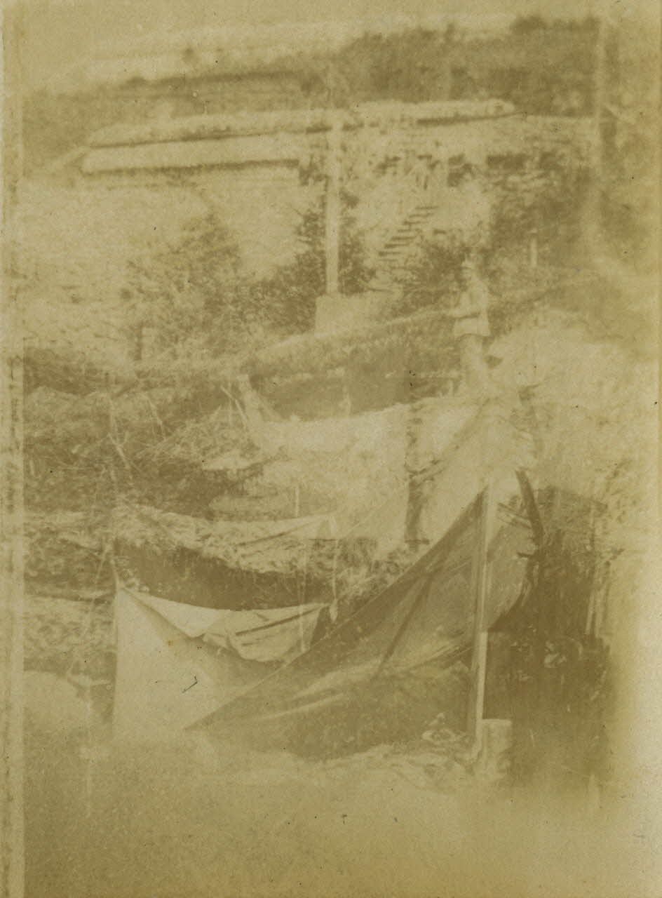 P.C. Coutard en face de Paissy. Les cuisines de CHR et cie sont camouflées pour la vue des avions boches. [légende d'origine]