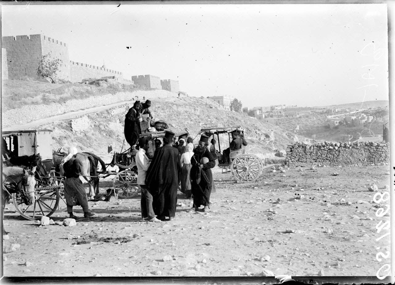 Palestine. Gethsemani. Remparts ouest, voitures de place. [légende d'origine]