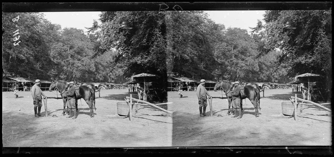 Parc d’Offémont, cantonnement et chevaux d’artillerie.