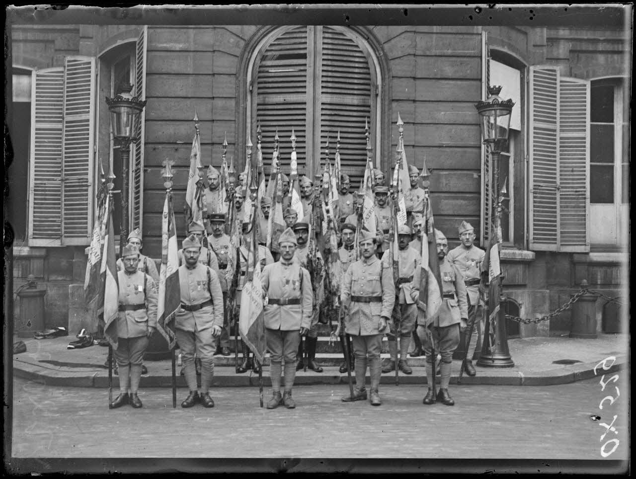 Paris 14 juillet. Les drapeaux du 8e corps d’armée : ensemble.