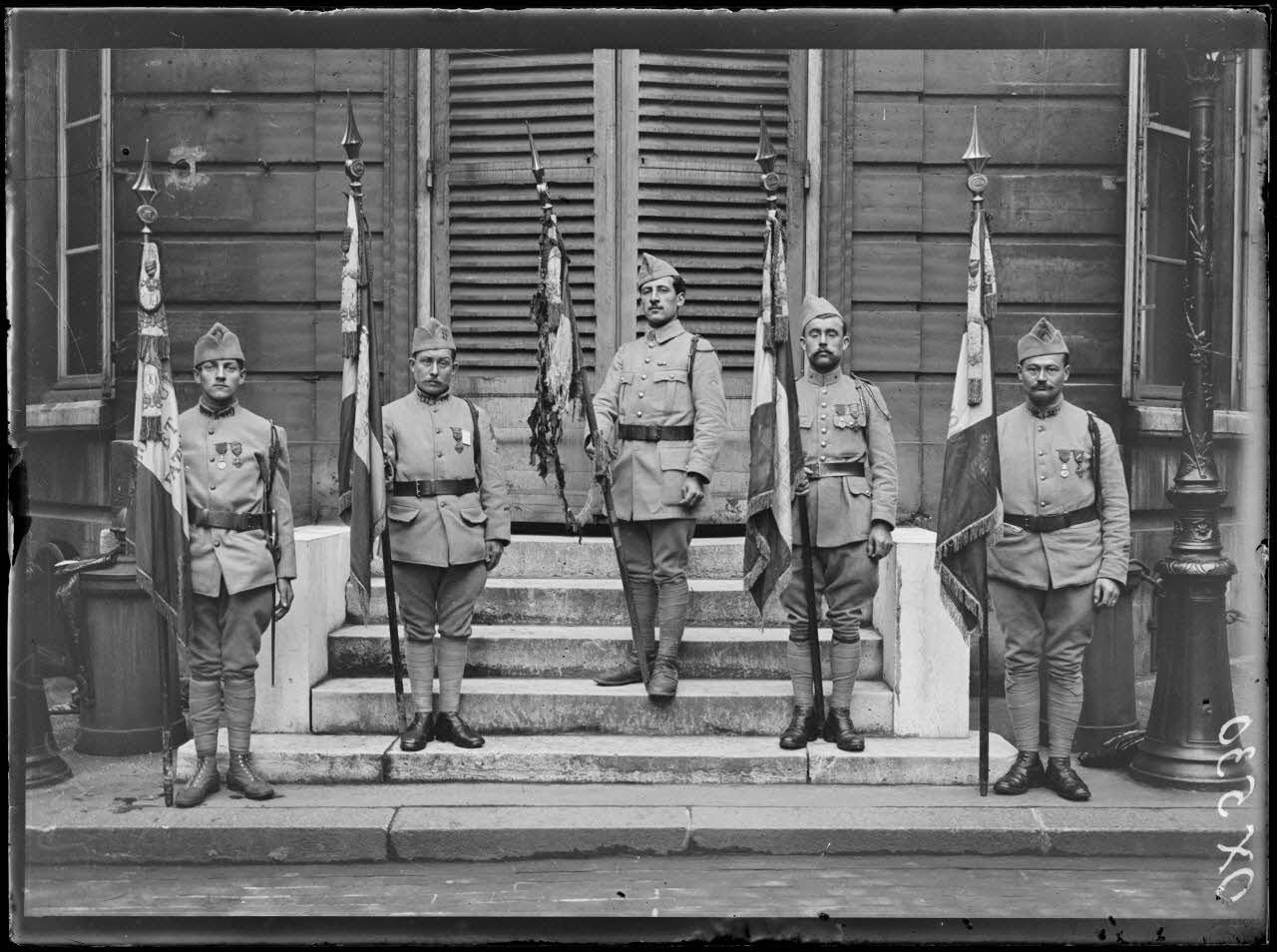 Paris 14 juillet. Les drapeaux du 8e corps d’armée : ensemble.
