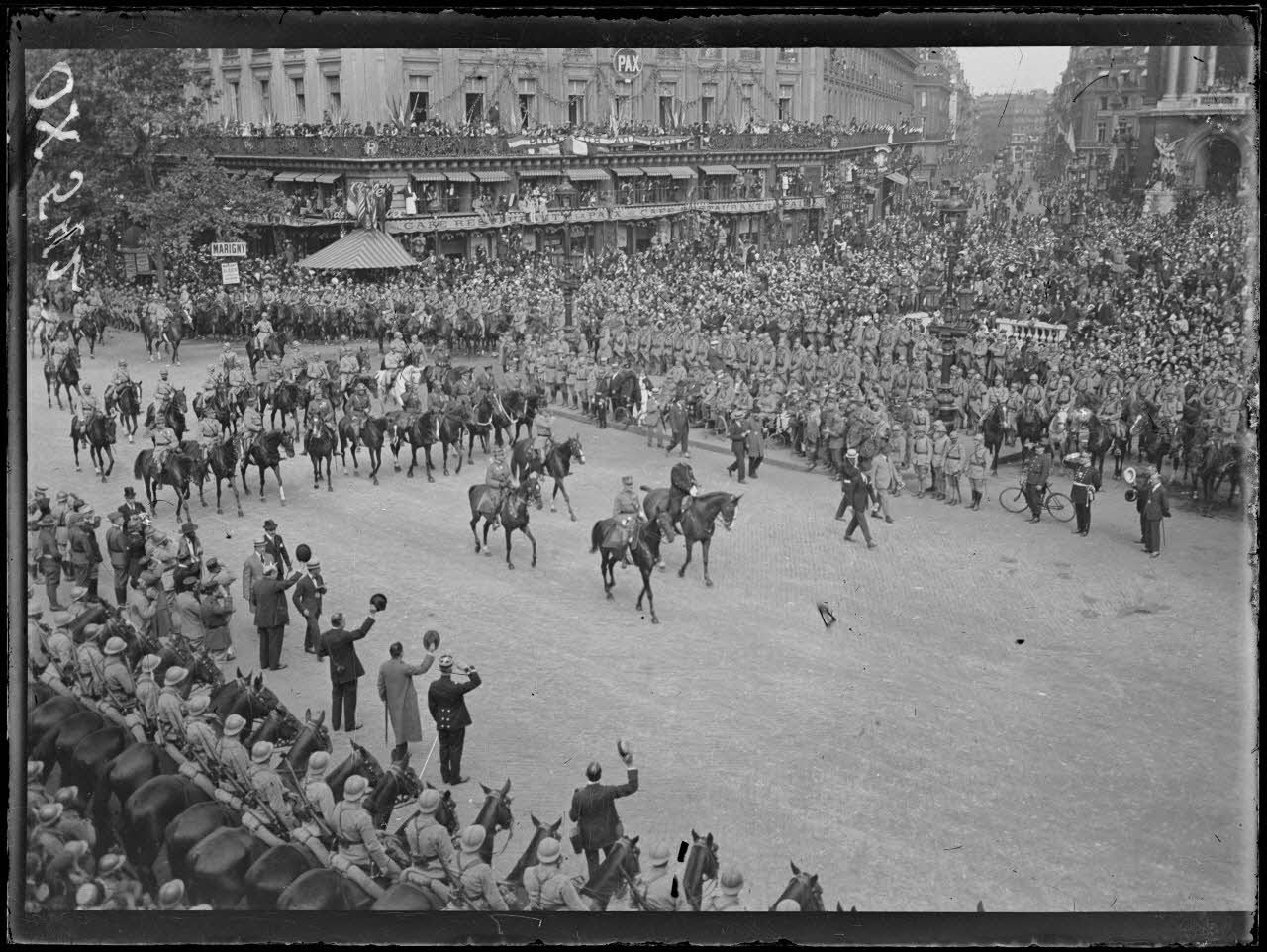 Paris 14 juillet. Place de l’Opéra, le défilé des troupes. [légende d'origine]