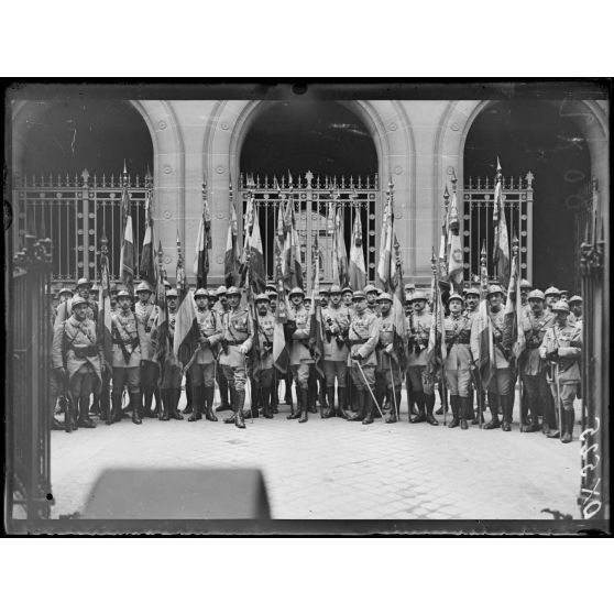 Paris 14 juillet. Les drapeaux du 8e corps d’armée : ensemble.