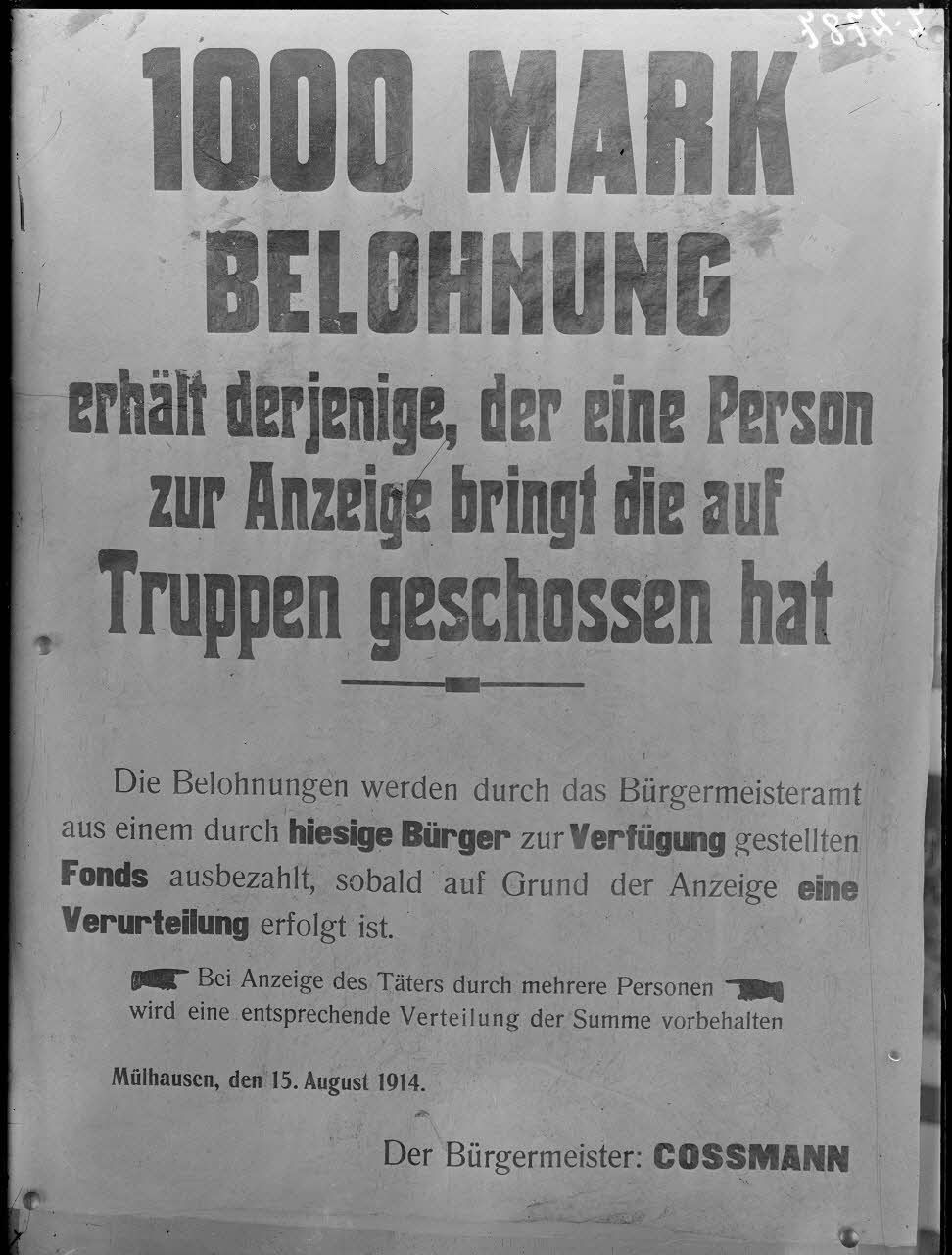 Paris, 6 avenue Malakoff. Musée franco-américain. Affiche allemande. "1000 marks Belhonung". [légende d'origine]